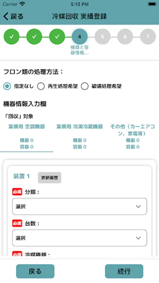 ・フロンの回収作業の簡易記録、工程管理票(回収業者控え、機器所有者控え)の自動発行、電子管理