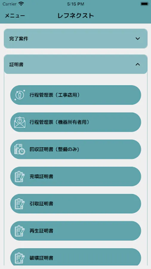 ・フロン処理依頼で再生希望や判断の場合、再生証明書の自動発行、電子管理