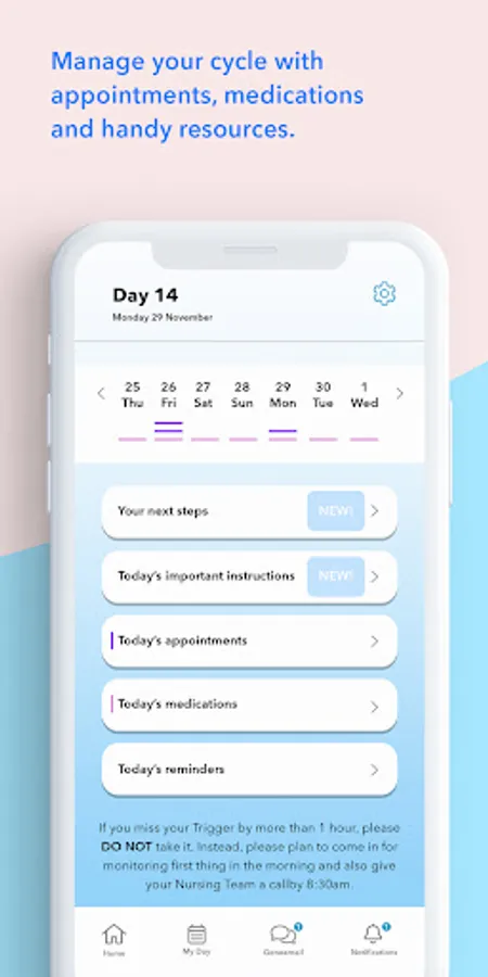 The app will ensure you stay on top of all your in-cycle appointments, have easy access to handy resources such as medication instructions, view and submit fee estimates, keep in touch with your Genea fertility team and never miss a thing with notifications.