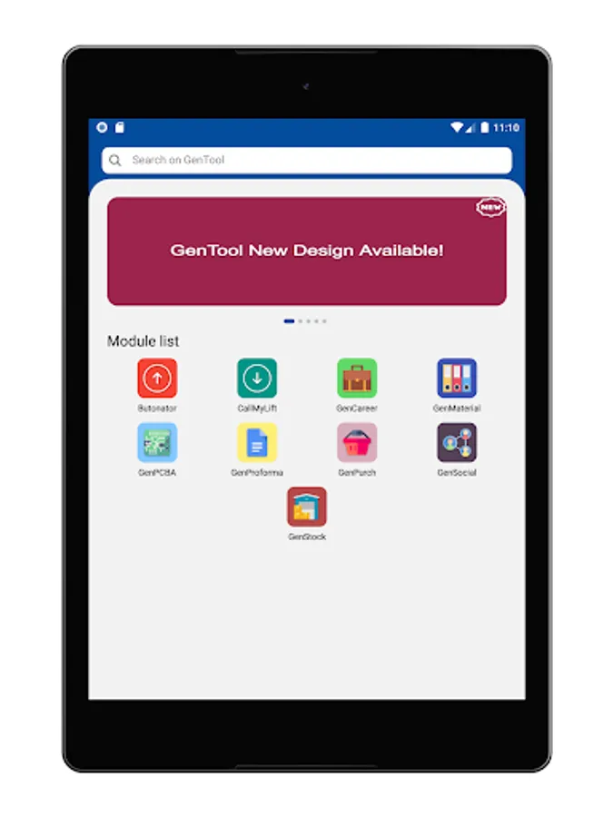 GenTool mobile application is the main application that contains applications in modules and provides management of applications.