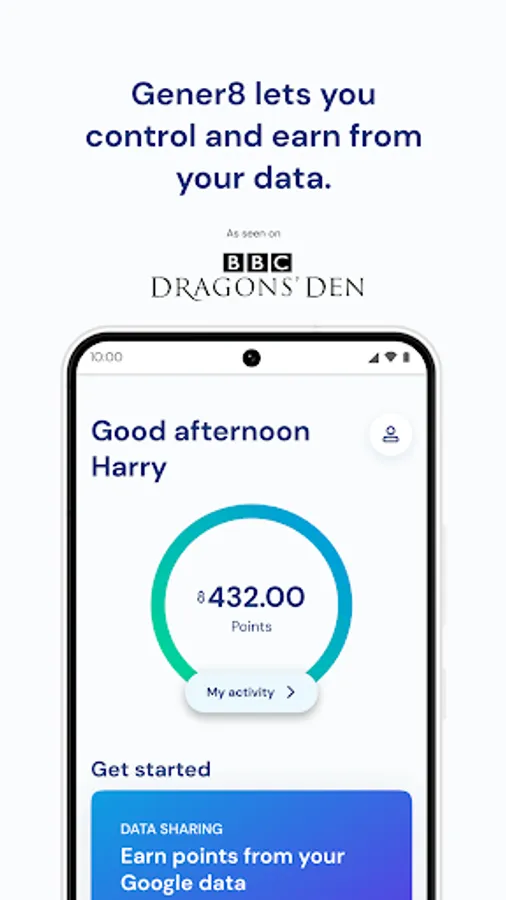 Gener8 shows you what information other apps hold on you. We visualise this in a beautiful and easy to understand manner and then we empower you to exchange your anonymised data from these companies for Gener8 rewards - should you choose to.