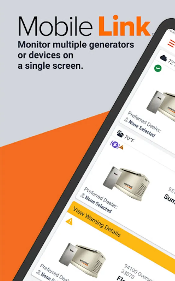 Mobile Link service and the Mobile Link app work with select automatic home standby generators from Generac, Centurion, Honeywell, Eaton, and Siemens.