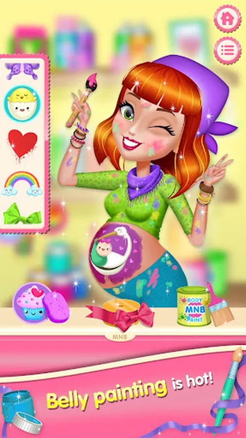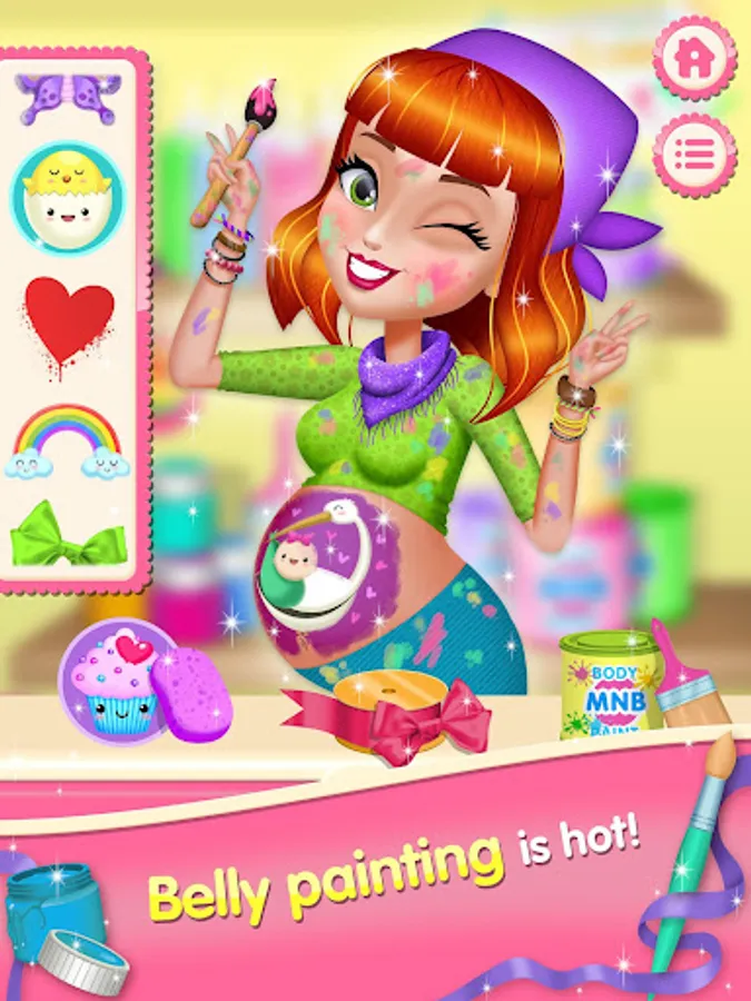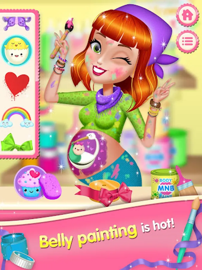 - Never before seen in an app! Paint mom’s belly in the body paint shop!