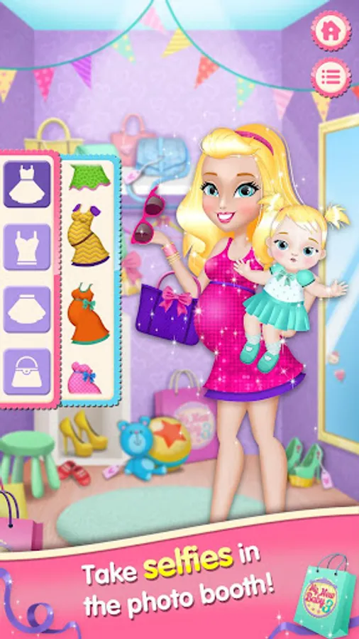 ★ You should definitely pass by the photo booth! Help Tiffany dress up mom and her baby with the most impressive look. You can search among hundreds of items and remember you can take a nice souvenir selfie of the fashion girls for when the baby’s born!