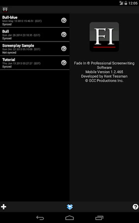 Fade In Mobile is a companion app for Fade In Professional Screenwriting Software for working with Fade In (.fadein) files. It is specifically designed to work with the unique interface and capabilities of your mobile device.