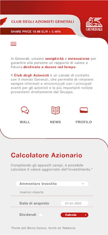 Club Degli Azionisti Generali is a tool dedicated to Generali Group Shareholders. A simple and secure app to keep updated on Generali: News from Group, Press releases, scheduled events, Shareholders General Meeting documents, tools to simulate your investments in the Group.