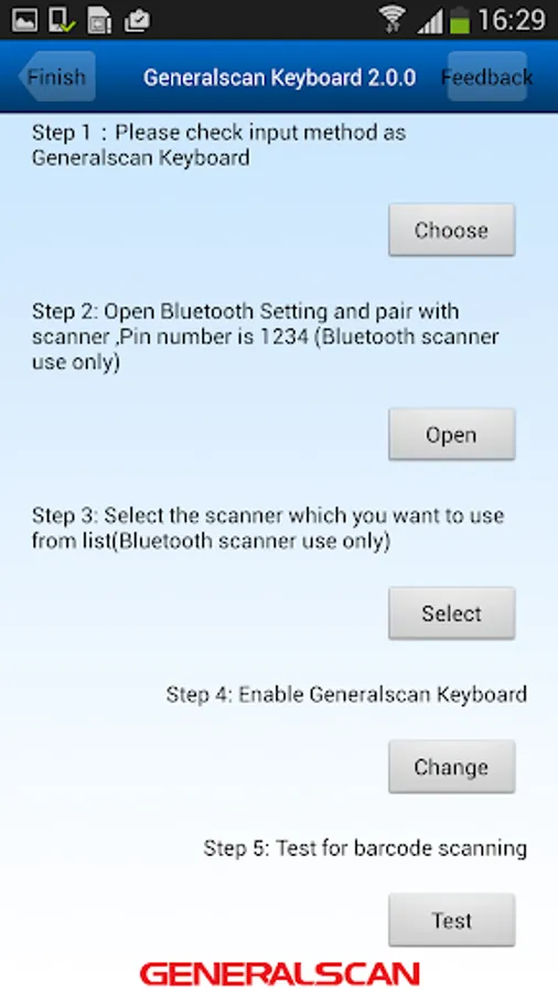 Generalscan Keyboard design a wizard to guide you connect Generalscan Bluetooth barcode scanner.You only need five step setting with wizard to work with scanner.