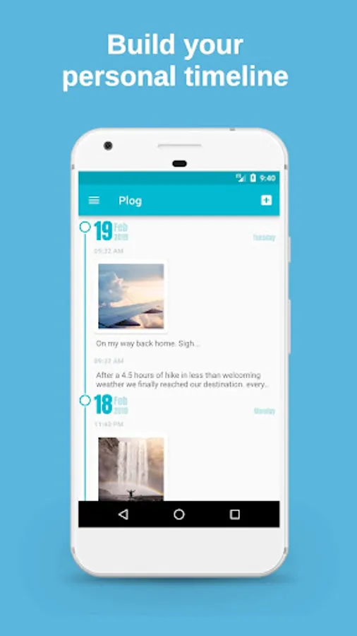 Record your journey, practice your writing skills, document important days and events in your life. Plog is your ideal companion.