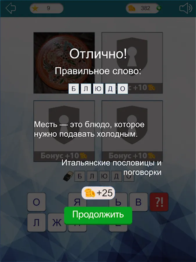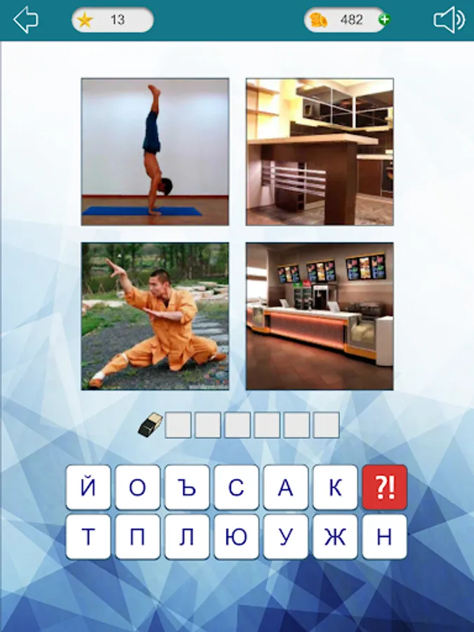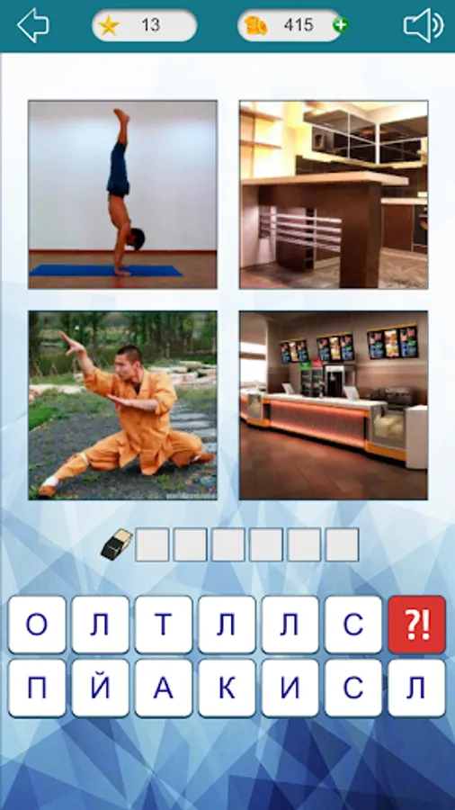 Once the game starts, you will see 4 photos and letters. Find the similarities between pictures - this is a hidden word. Enter it using the available characters. For a more interesting game, we closed three pictures, you'll be able to open them, but do not open for each image you will receive bonuses.