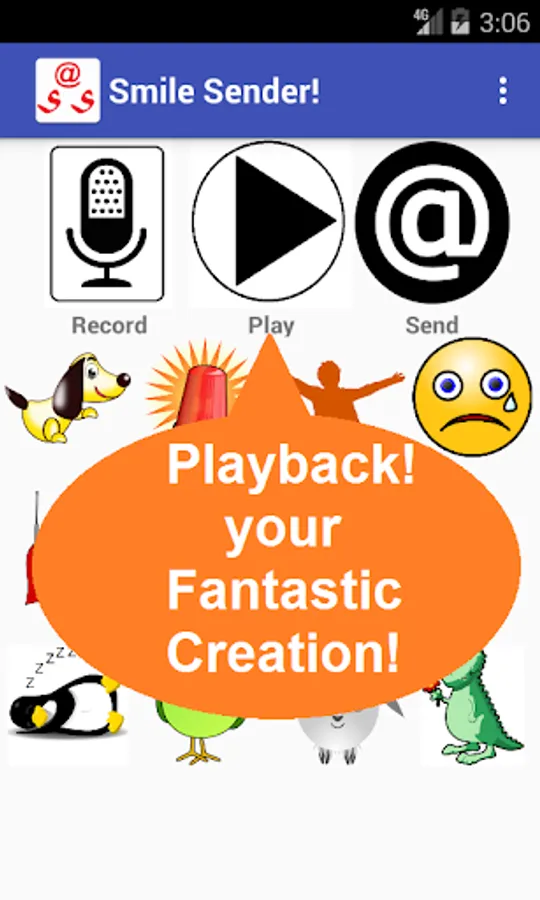 Tap Record, Say "hey, are you still sleeping?, Tap the "Sleeping Penguin", Tap Play to hear, Tap "@" to Send.