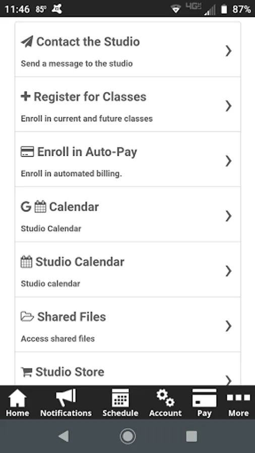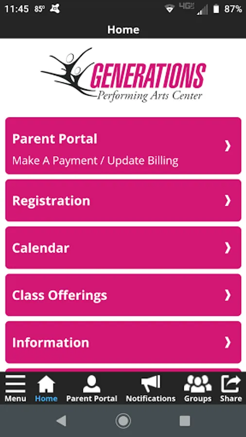 The Generations App allows you to register for classes. The Generations calendar, social media links, and contact information are also easily accessible from the app.