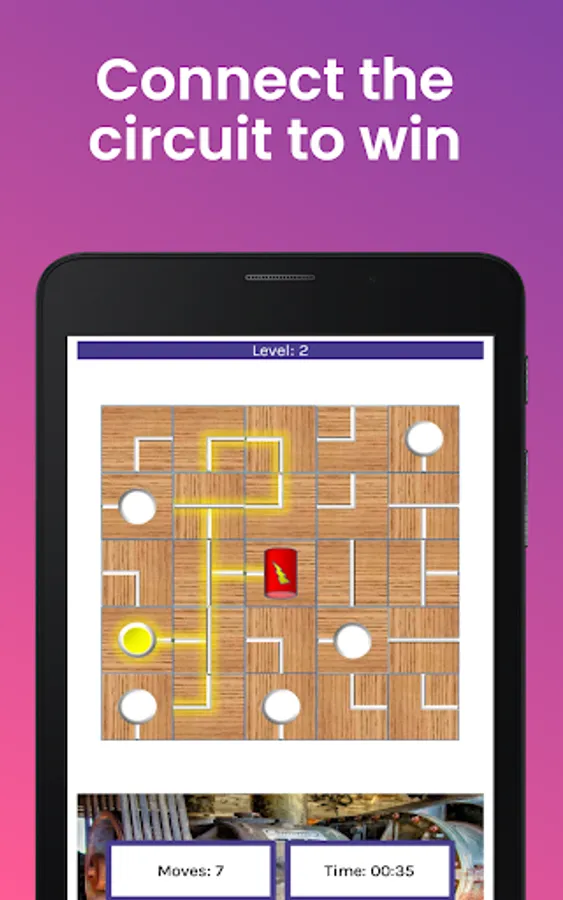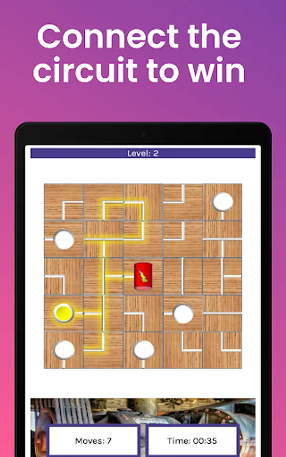 Rotate the tiles to connect the circuit to the battery. Light all the lamps to win but its not so easy as you must solve the circuit before the time runs out. Our free version comes with 9 level of fun, each with a different circuit to solve. Discover what happens when you add more batteries, interlink the wires and introduce crazy self-rotating tiles.