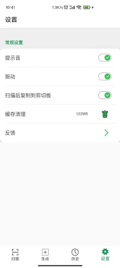•You can set the sound, vibration, copy to clipboard, clear cache, etc. for successful scanning