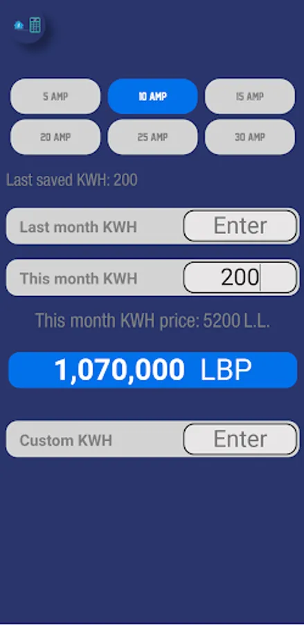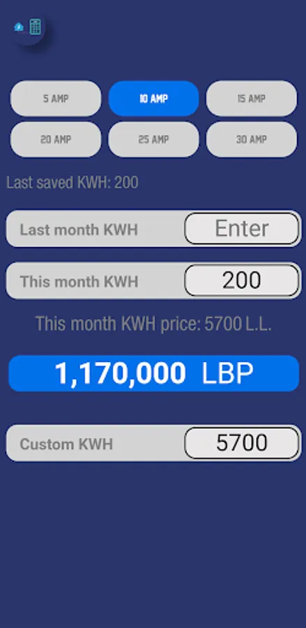 Lebanon Generator Calculator app is ready to help you Calculate your Monthly Generator Bills easily so can track your Bills and add your custom KWH prices based on your location.