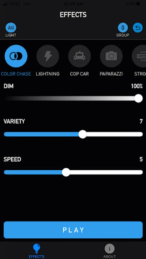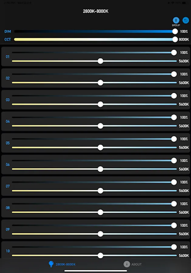 Dimmer Mode: When using a single light or multiples lights set to the same group number, Dimmer mode lets you adjust brightness levels globally or for each individual light.
