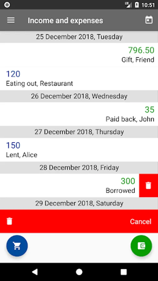 There are many apps here for home accounting with heaps of functions, graphics, diagrams. But most people only need to record income and expenses dividing them into categories. And of course to get statistics on them, as well as on creditors or debtors. Income & Expenses is not a complicated home accounting app, it is an easy-to-use and simple tool for recording and tracking income and expenses, that is always at hand. And your money will be happy!