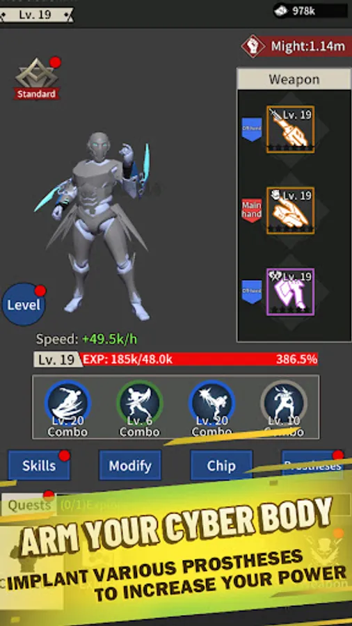 8 body parts can be equipped with Prostheses. Upgrade and assemble Prostheses to get stronger in the Cyber World!