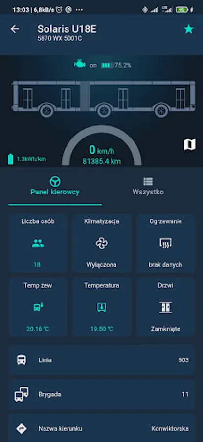 The application allows, among others preview of the vehicle position on the map, real-time preview of vehicle parameters, monitoring preview