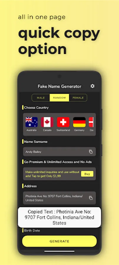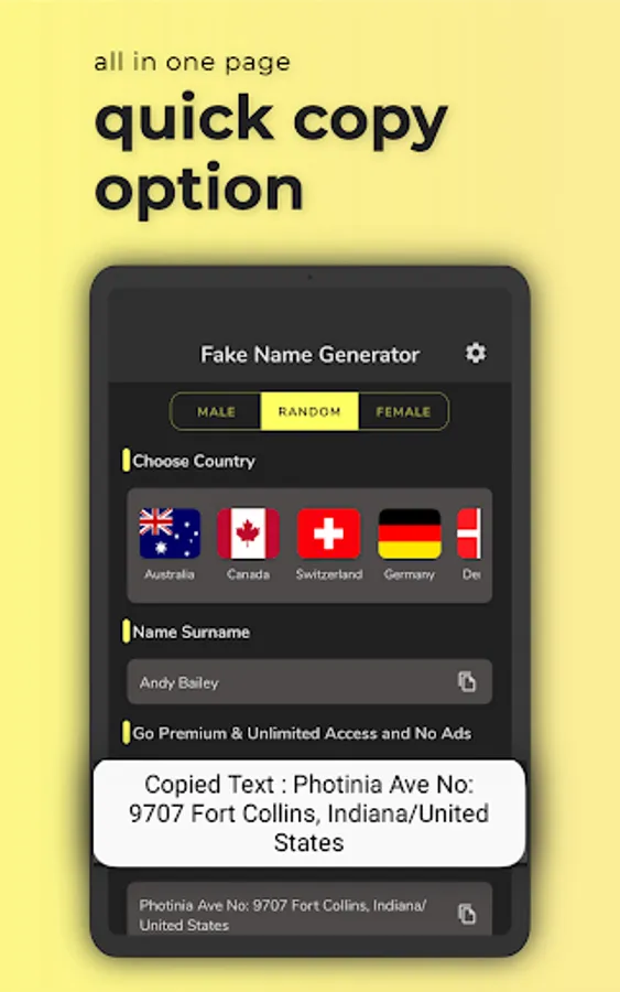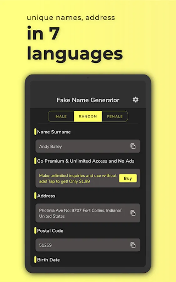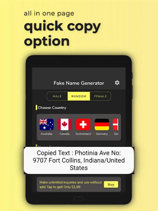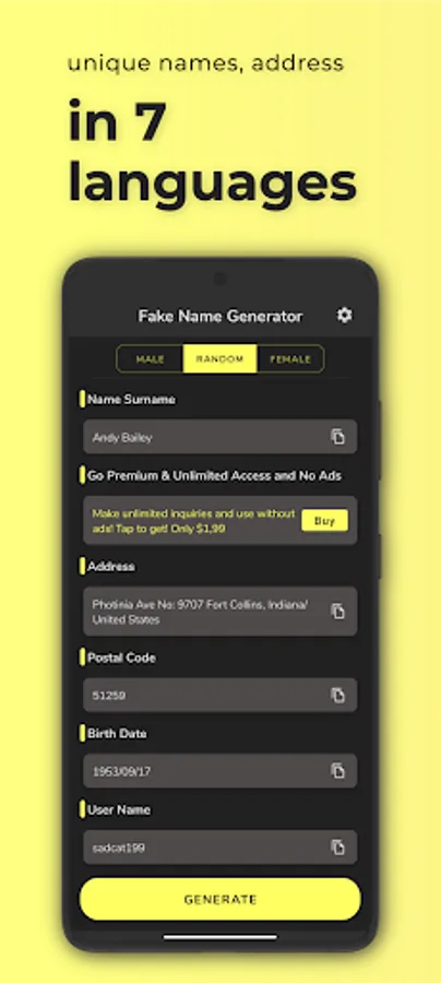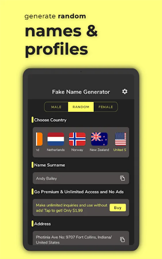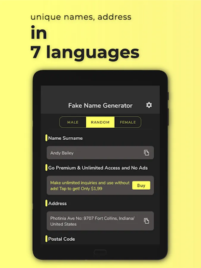 Fake name generator is completely free, all functions are available straight away after download random name picker app. Random name generator generate random & fake names from wheel of names for social dummy profiles