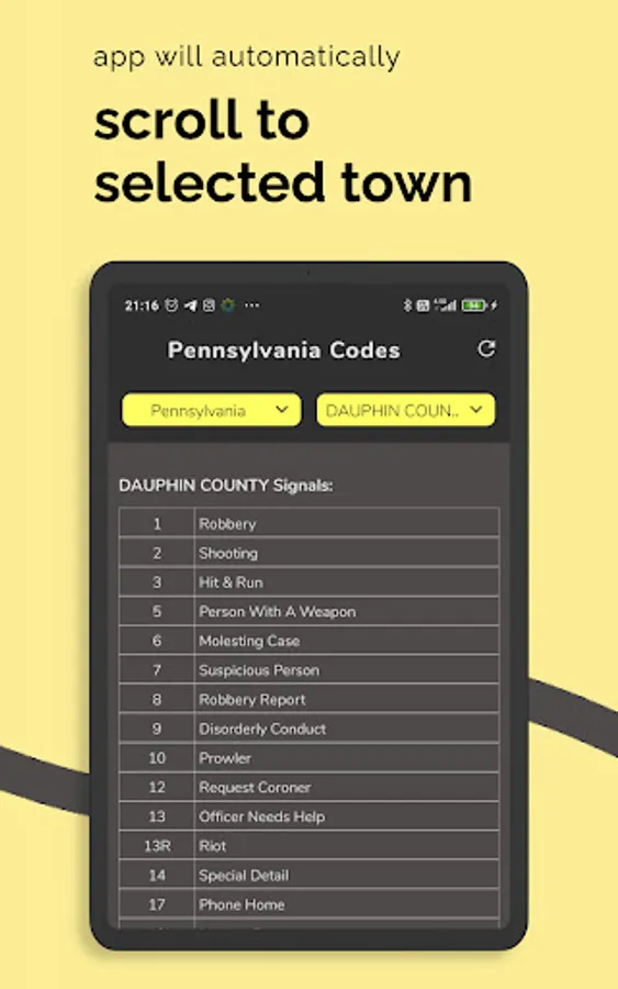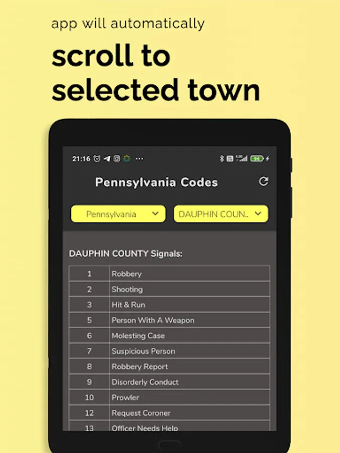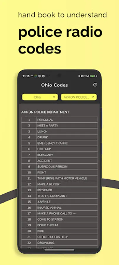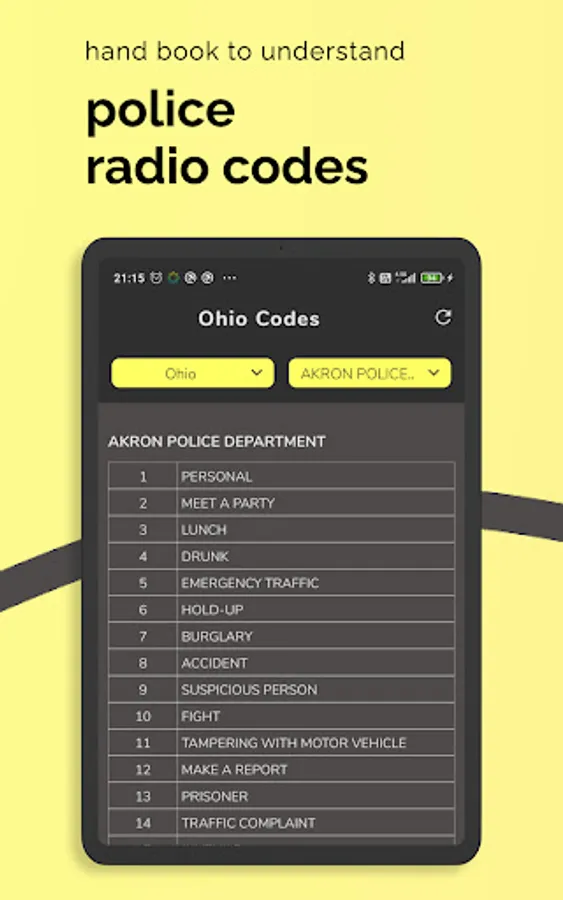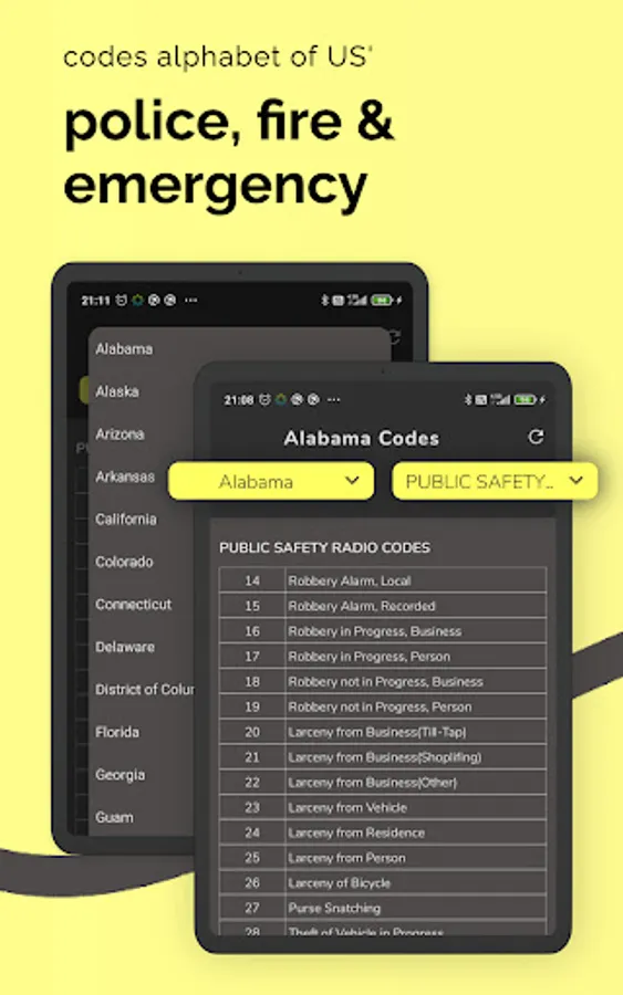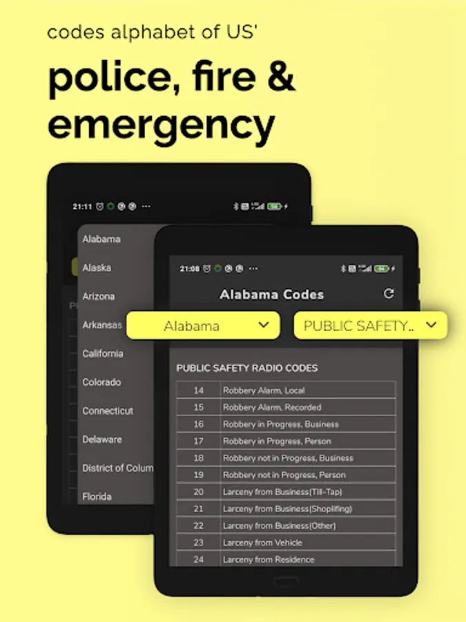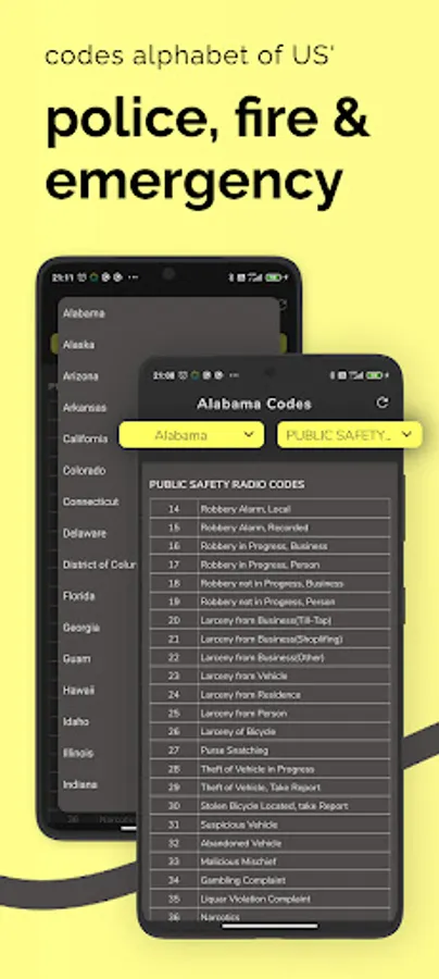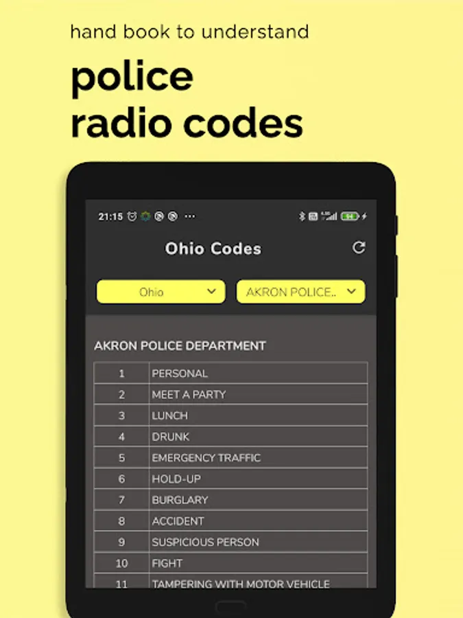 - View police, fire, and emergency codes alphabet. On-hand books for citizens to understand what situation the police are referring to without any training.