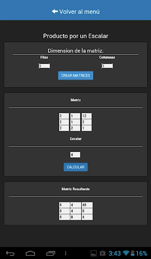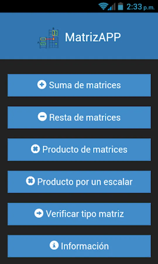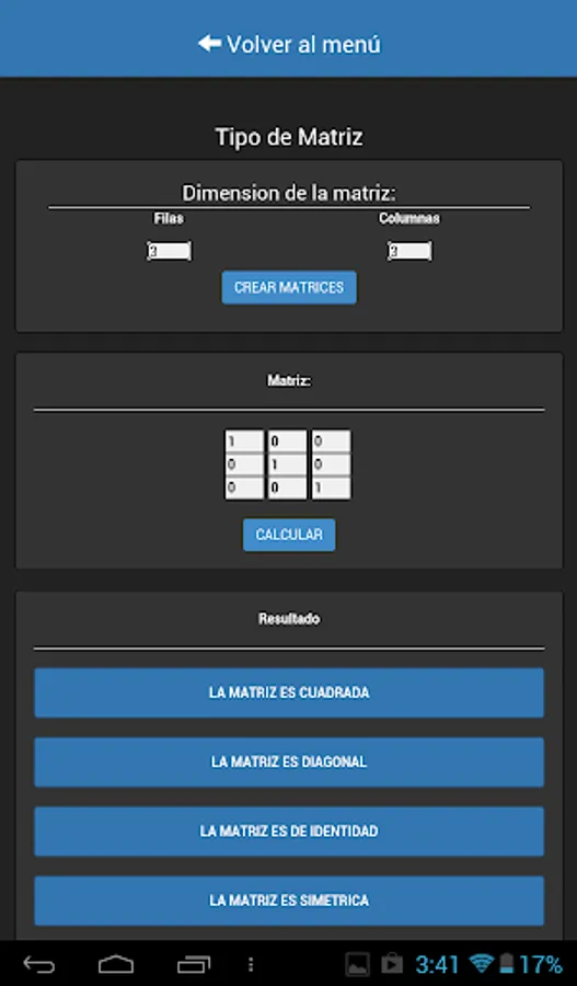 It is an application designed to practice and solve math exercises based on linear algebra matrices.