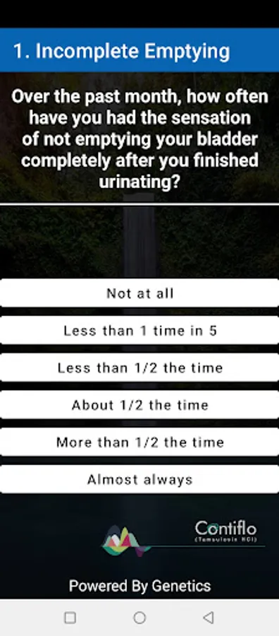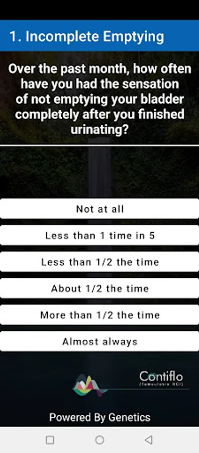 "BPH Screening Test" is an application designed for calculating International Prostate Symptom Score (IPSS) in patients with prostate enlargement, especially benign prostatic hyperplasia (BPH). "BPH Screening Test should be filled by the patient himself. BPH Screening Test scores is based on the answers to seven questions concerning urinary symptoms. The answers are assigned points from 0 to 5. The total score can therefore range from 0 to 35 (Mild to Severe).