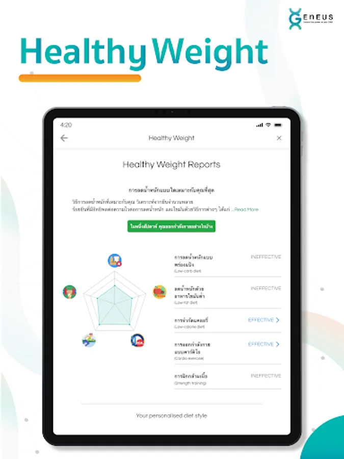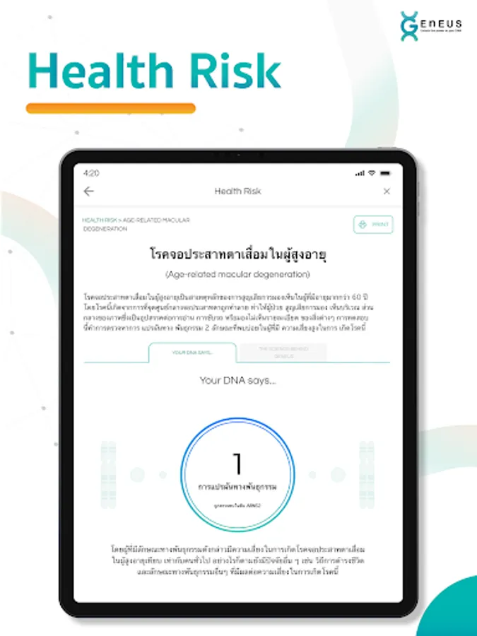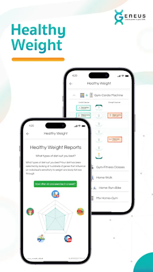 Geneus decodes genetic markers in your DNA to create the personalized DNA-based solutions to your unique needs for you to maximize your results from lifestyle modification.