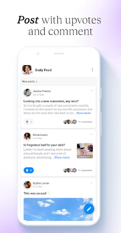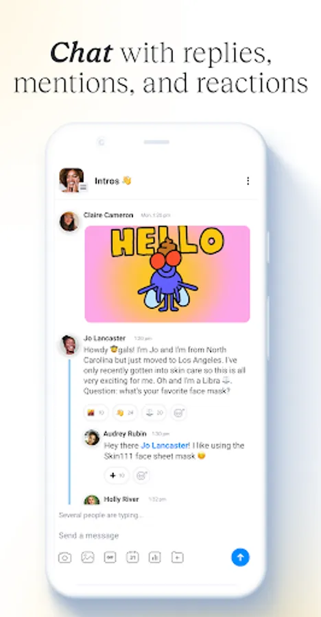 These forum-style rooms are a bit more organized than chat rooms and great for announcements and longer-form discussion. Members of the group can upvote and comment, and everyone can sort posts by most recent, most upvotes, or most commented-on.