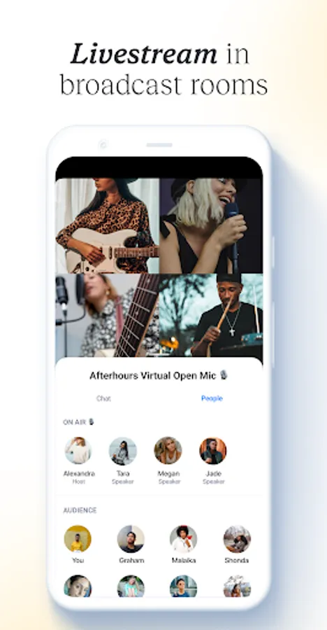 Go live on video with up to 9 people on stage and thousands of viewers to call on-air. Use these for things like casual panels, DIY tutorials, live-reacts, and more...