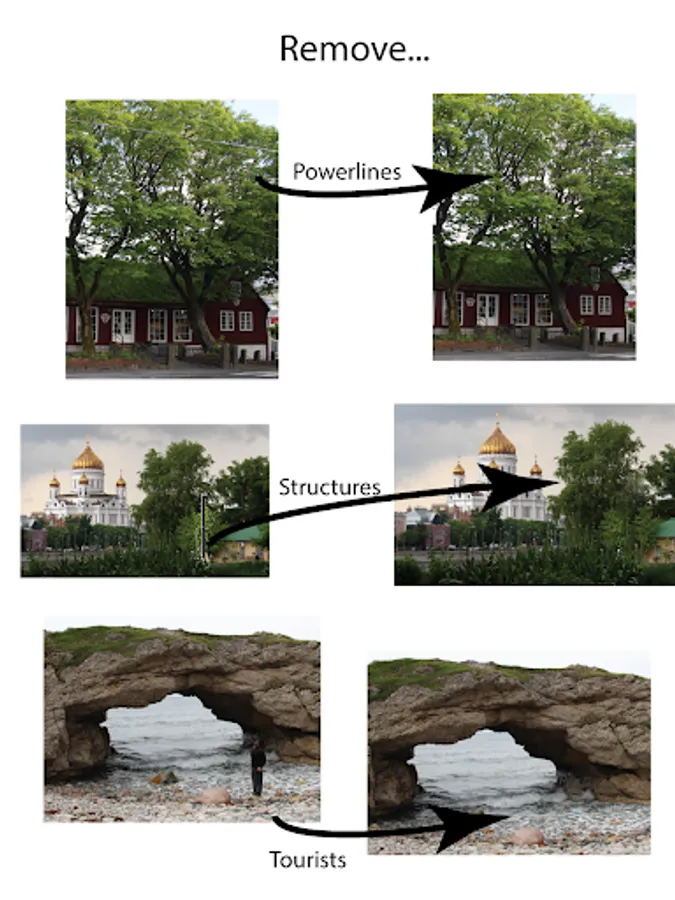 Erase unwanted objects and people from your pictures using Image Inpainting.