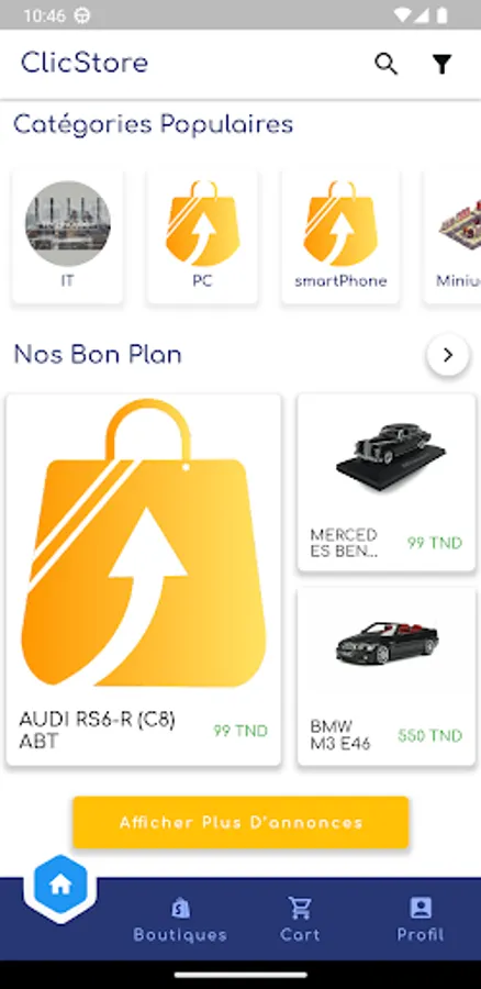 Clicstore is a solidarity-based Marktplace selling outlets and items of different categories. Clicstore offers you all the tools you need to create an online store and develop your business. Our platform offers a personalized, optimized and flexible experience to succeed in your field without the need for technical skills.