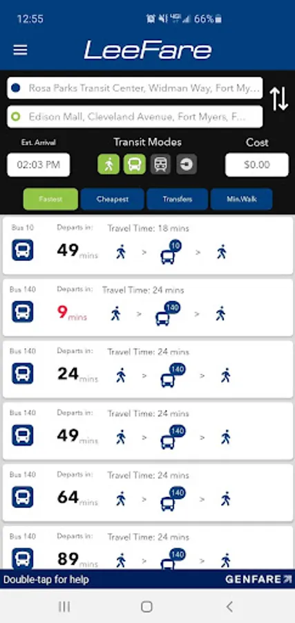 Using the LeeFare mobile app is a convenient way to purchase bus fares, manage your TropiCard balance and plan bus trips. App users may also access route information and important transit alerts related to bus stops, routes, detours, and holiday specific service modifications. Features include: