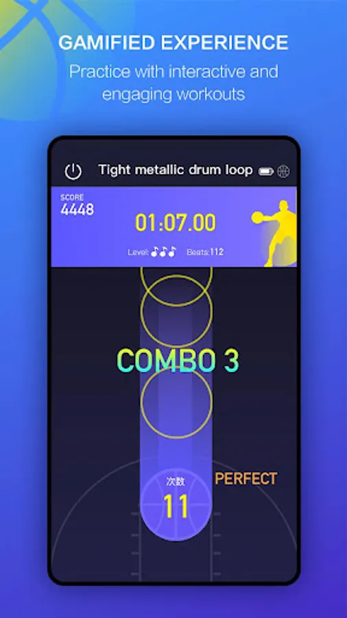 3. Practice dribbling with 9 music tempo challenges. Follow the beats on the screen. When a beat comes up, pound dribble hard on the ground to catch it