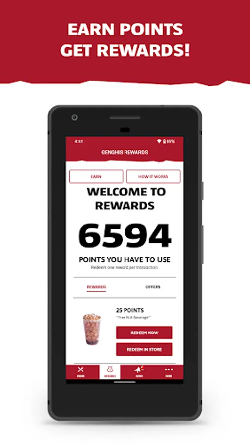 Redeem Points - Redeem your points for FREE food in the app on in-store.