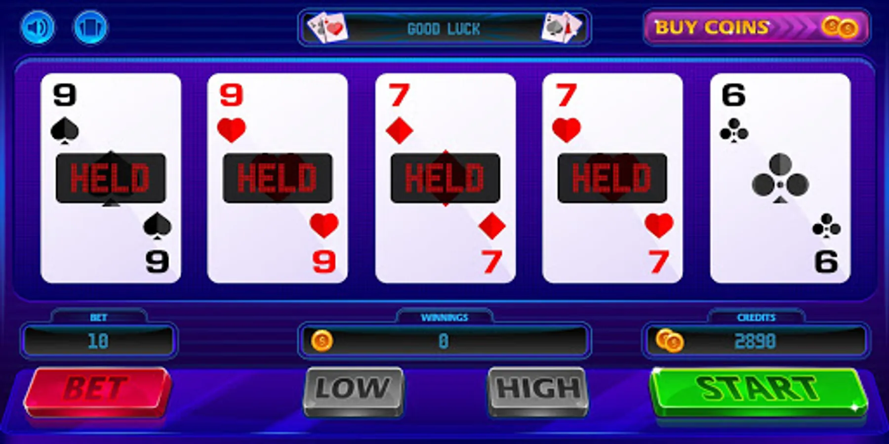 Unlike normal slot machines this game is all about skills. Try to beat the bank and get the best combination out of the five cards offered.