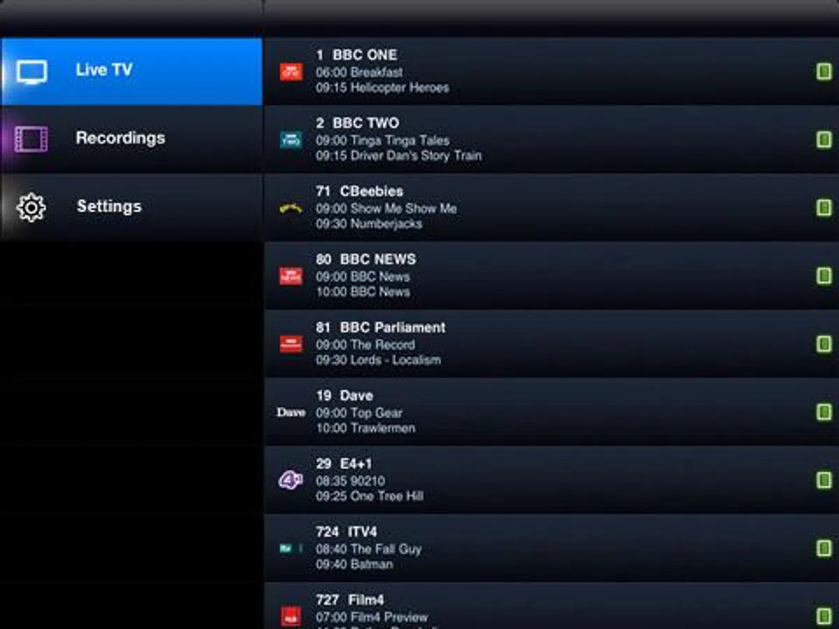 - Record FTA TV shows and store in your mobile device