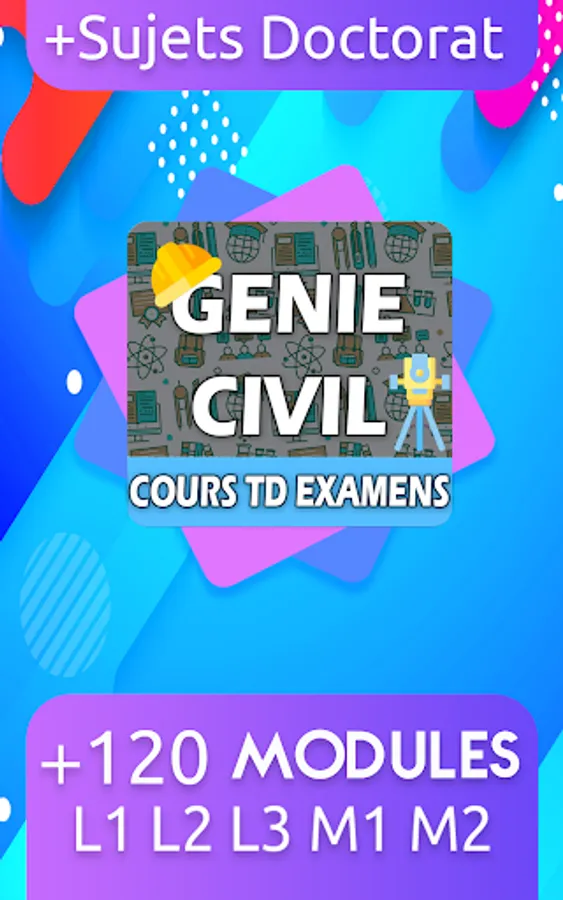 Educational application is a dynamic library contains civil engineering courses and TD and exercises corrected for all civil engineering modules of L2, L3, master 1, master 2 on all specialties: Materials in civil engineering, Geotechnics, Structures, Equipment of the habitat, Roads and works of art and Public Works, and corrected exams, mimeograph, summary of specialized Civil Engineering and you can download decoments