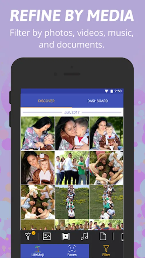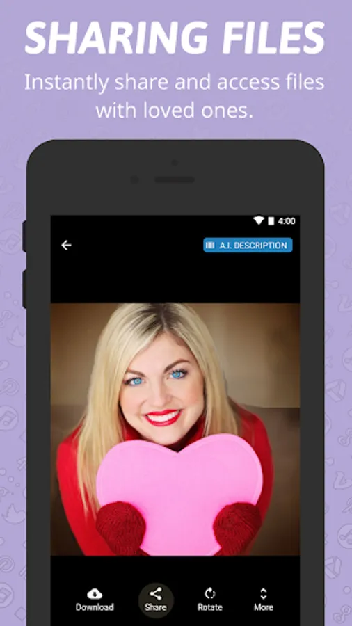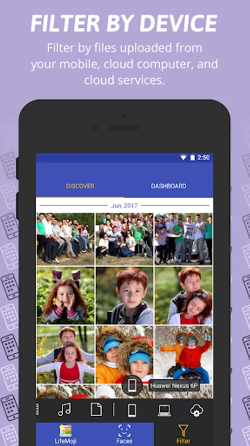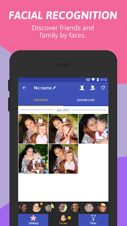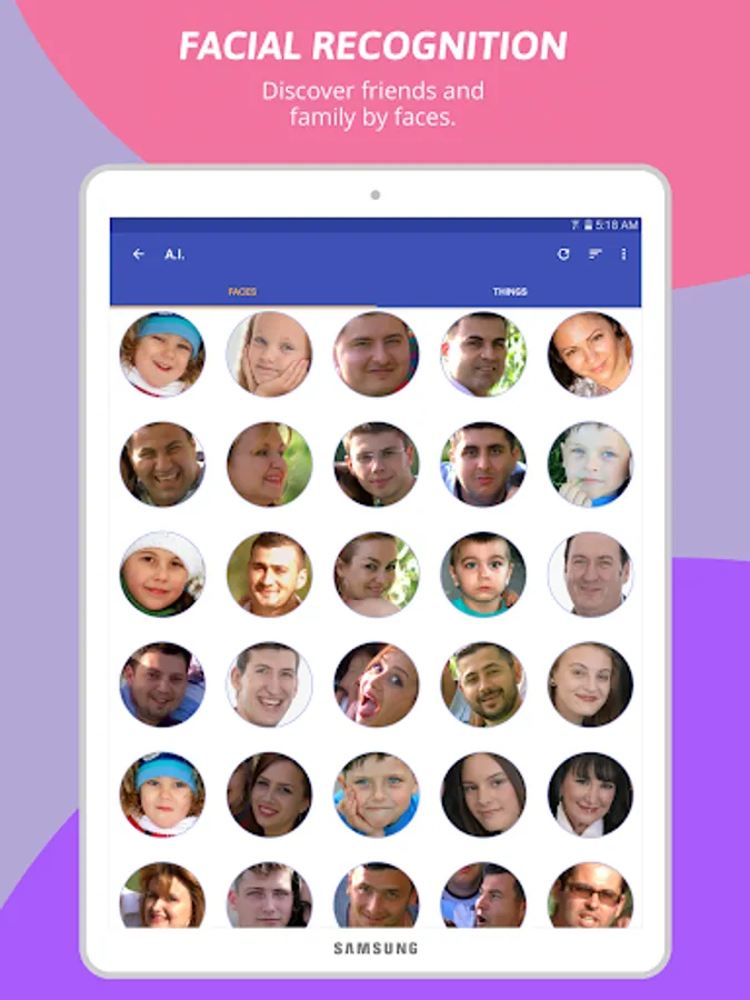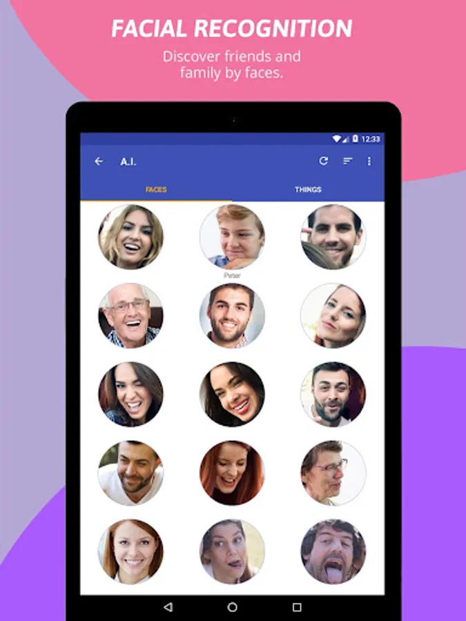 ● AI FACIAL RECOGNITION: Upload photos from your camera roll or connect your social media accounts to organize your photos by faces. Find possible matches, and name your friends, family, and even pets to search through your photos instantly.