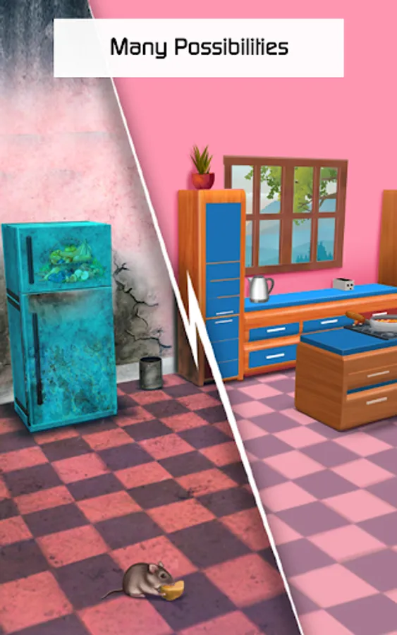 Accomplish your design ideas & make her distressed with a complete makeover. Let's renovate and decorate her messy rooms in the mansion. Renovate it as you own it!