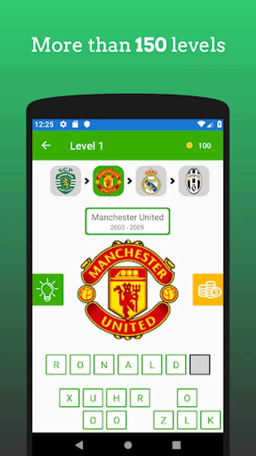 Football Quiz is a soccer game where you have to guess the football player from the information about his career, and your goal is to complete the footballer name