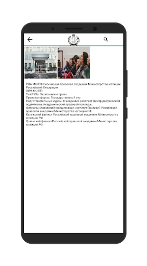 A mobile application for students and applicants of the All-Russian State University of Justice (RPA of the Ministry of Justice of Russia), which is the only legal university of the Ministry of Justice of the Russian Federation and one of the largest law universities in the country, which has a military training center.