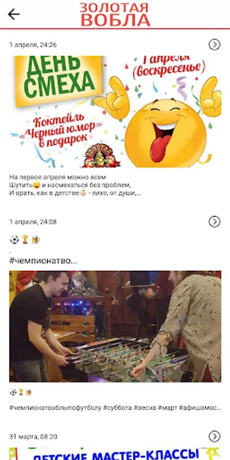 "GOLDEN Voblyi" - People's bar, with affordable prices and service, original interior and evening entertainment program. A distinctive feature of the restaurant chain "GOLDEN Voblyi" is finding a designer. In addition to the usual pubs massive dark wood tables, we have walls and ceilings - wooden spoons, wicker baskets, old sewing machines, posters in the style of the 20s, old-fashioned framed photos in a word, all the details of everyday life that surrounded our parents and grandparents.