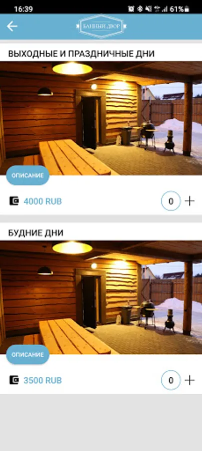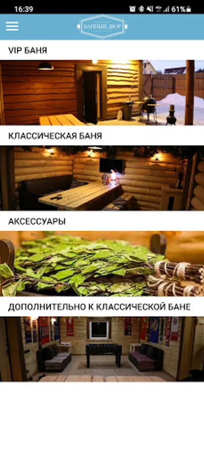 The Banny Dvor mobile application was made for the convenience of acquaintance and ordering our services.