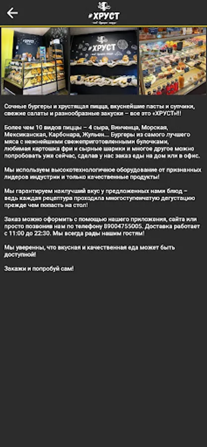 You can place an order using our application, website, or simply by calling us at 89004755005. Delivery works from 11:00 to 22:30. We are always glad to our guests!