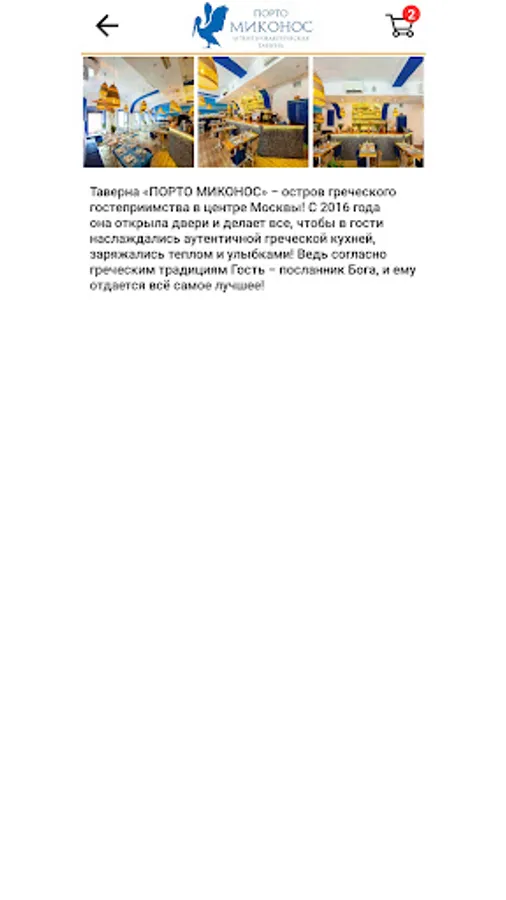 Tavern "PORTO MYKONOS" - an island of Greek hospitality in the center of Moscow! Since 2016, she has opened her doors and is doing everything so that her guests enjoy authentic Greek cuisine, recharge with warmth and smiles! Indeed, according to Greek traditions, the Guest is the messenger of God, and all the best is given to him!