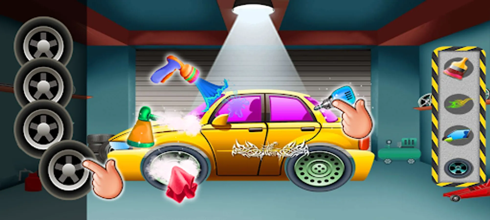 Kids car washer auto garage workshop in a famous hill racing car washing & repair cleanup game for girls and boys. If you are true lover of cars and specially the hill racing cars, you will love to get repair and routine checkup for your car.