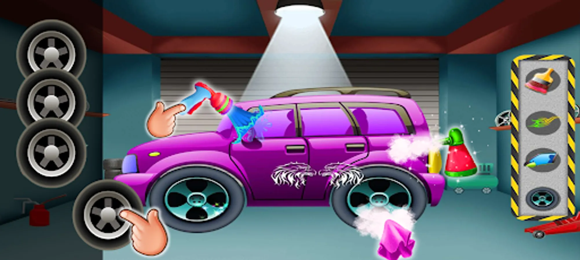 Be ready for the oil change and makeover of your dream car. Your cars need to jack it up and replace the tire and fix the issues from below engine. Your favourite sports car need a daily checkup to maintain its speed and damage free.In this free cars wash game, you will have lot of fun and entertainment activities. Make your own dream car with customised designs and accessories. Repair the body damaged and re-paint the color with your customised pattern.Be a crazy car designer. There are jeeps, super sports cars, hills cars, monster trucks and many more.Wax your car in a garage is more preferable than sunlight.There are some vehicle and car cleaning items like car buffers and car polishers, scrapers & pressure washers, dusters & car wash towels, mitts, buckets & spray bottles, interior detailing brushes, husky bucket, pump sprayer, detailing vacuum, water hoses, rolling creepers, detailing carts, pad washer, air blower, cleaning gun and eraser tool.