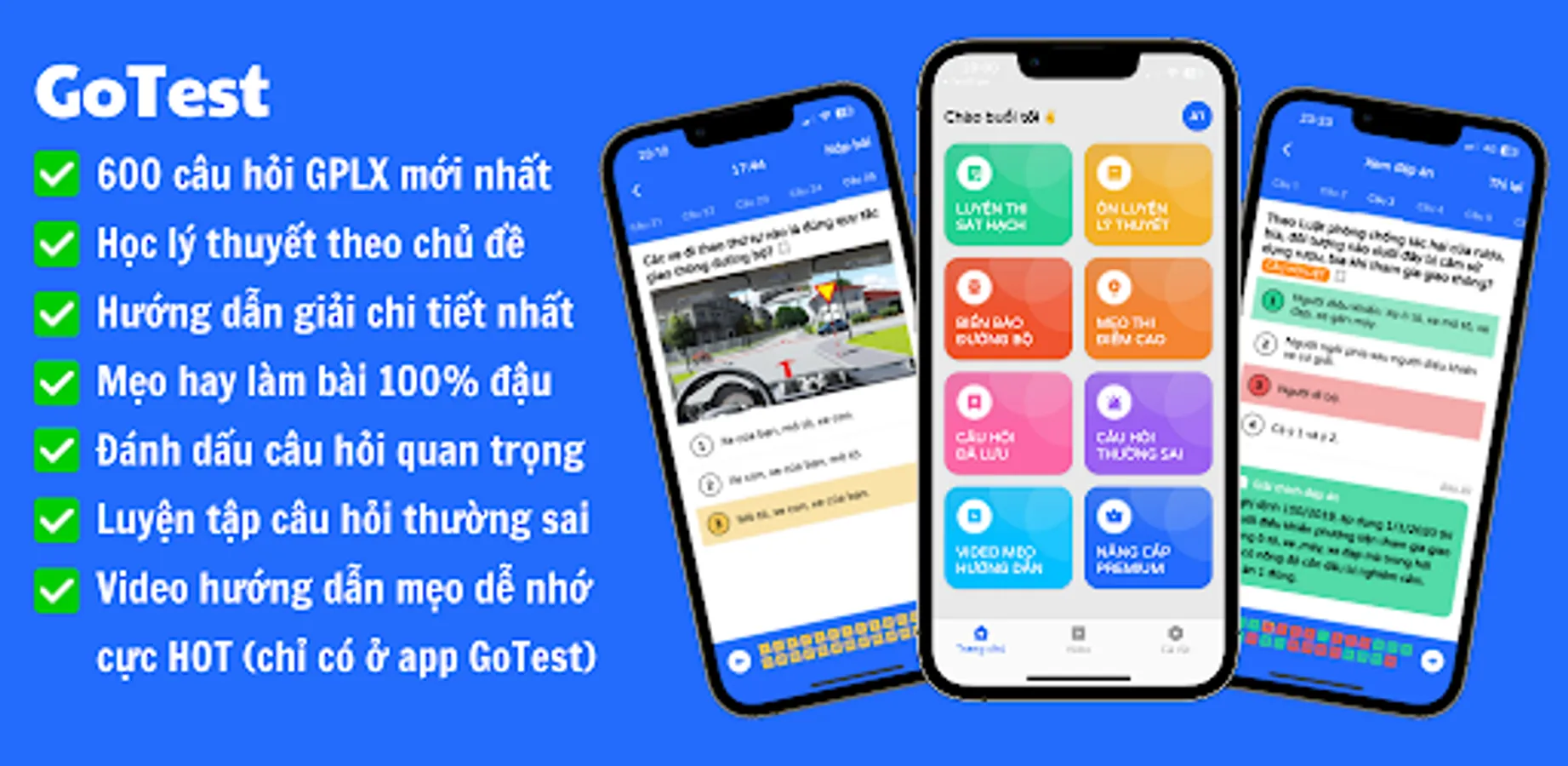Prepare for the driver's license theory exam with the GoTest application - Review for Motorcycle and Car Driver's License Tests. GPLX A1, A2, B2, B1. This is the newest and most complete application for 2023, with all current classes of car and motorbike driving licenses.