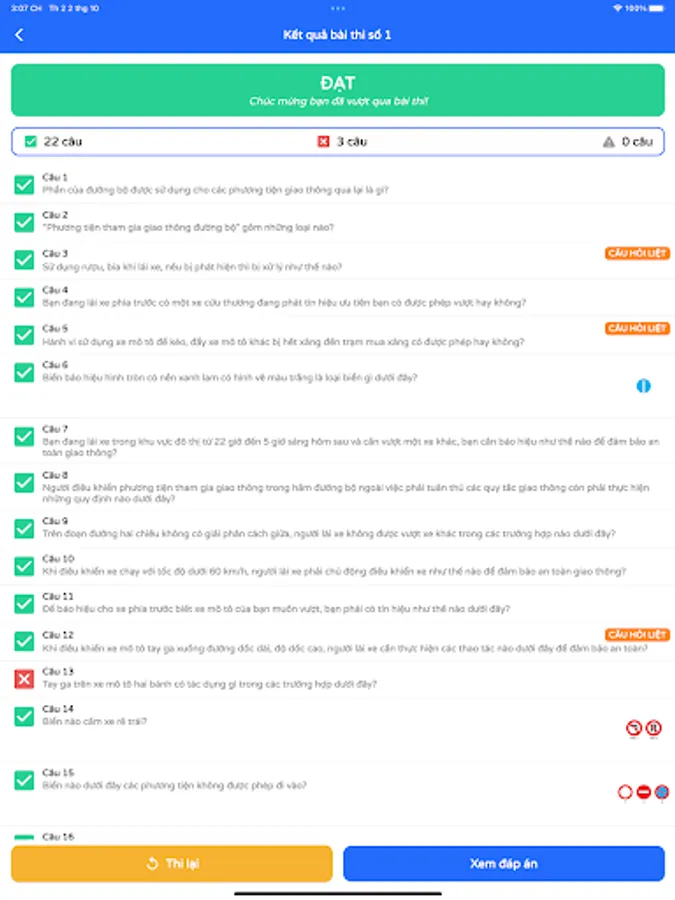 The application is not only a great assistant for you to review for the driver's license theory test for cars and motorbikes, but also supports the review of driving theory so you can achieve the best results.
