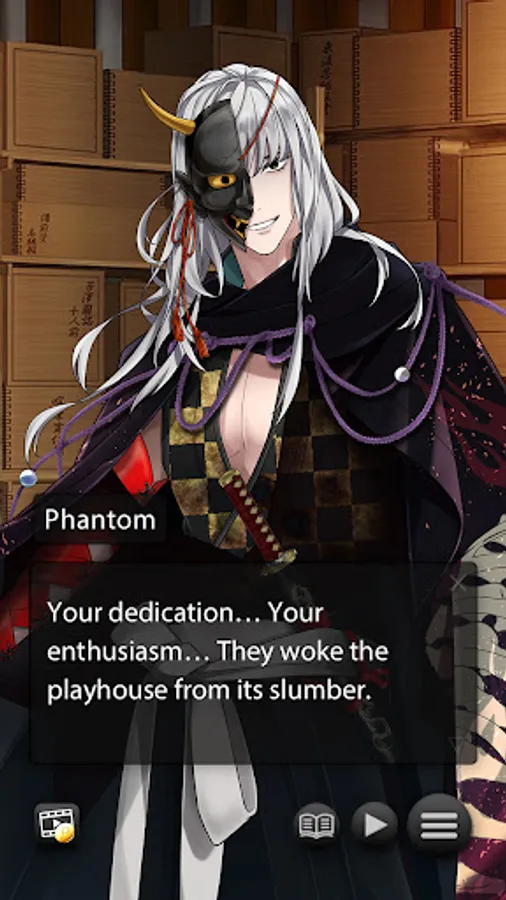 A dark kabuki genius who secretly pulls the strings of the playhouse from the shadows. Your arrival at the theater disrupts the delicate equilibrium of his existence, but as time passes, the specter gradually comes to see you as an ally… and then an obsession. Before long, you find yourself tangled in a twisted relationship as dangerous as it is devoted. But when outside forces threaten the theater and push the ghost’s passion to fever pitch, you’re forced to realize that this romantic story is hurtling toward a tragic end.